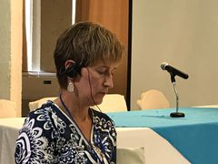 Dr. Laure Adrien addressing the conference and thanking HsCC for its efforts on behalf of the Ministry of Health.
